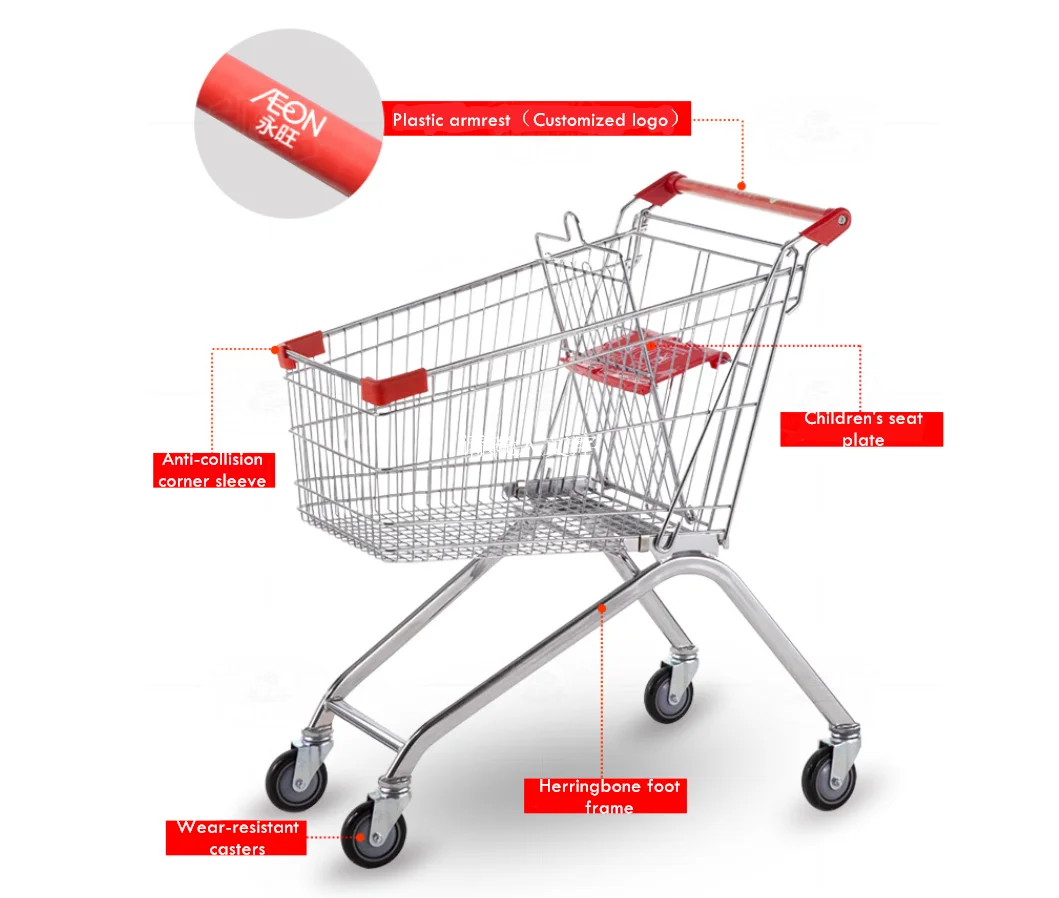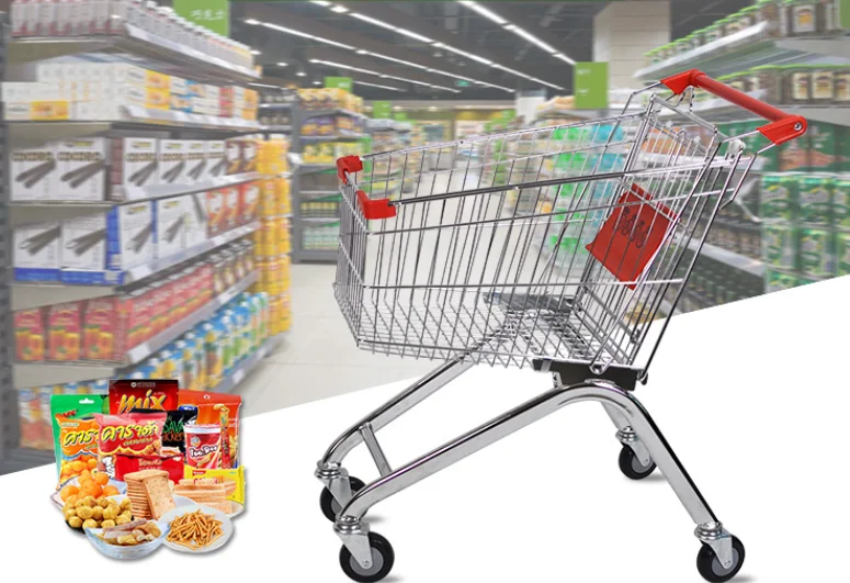 Ciężki, europejski wózek zakupowy z metali od wysokiej jakości chińskiego producenta, solidny, trwały i elegancko zaprojektowany. Duża pojemność, odpowiedni dla różnych rynków i supermarketów, ułatwia zakupy. Materiał metalowy, solidny i niezawodny, jest idealnym wyborem do zakupów.