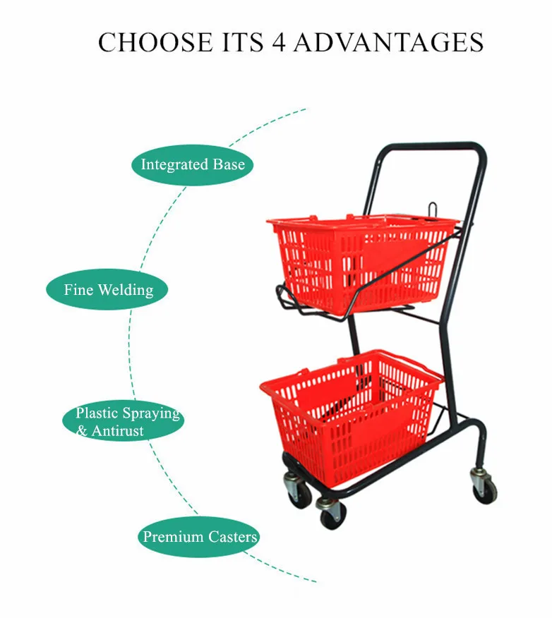 Jest to przenośny japoński wózek zakupowy dwukoszykowy o pojemności 40L. Został skonstruowany z mocnych materiałów, co zapewnia piękny design. Projekt z dwoma koszykami ułatwia sortowanie przedmiotów, ma dużą pojemność i odpowiada na potrzeby codziennych zakupów. Ma wygodne obrotowe koła, które ułatwiają poruszanie się z miejsca na miejsce oraz jest składany, co ułatwia przechowywanie.
