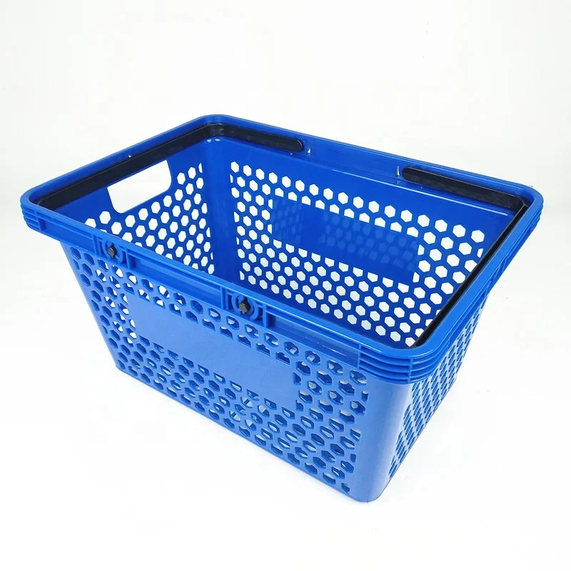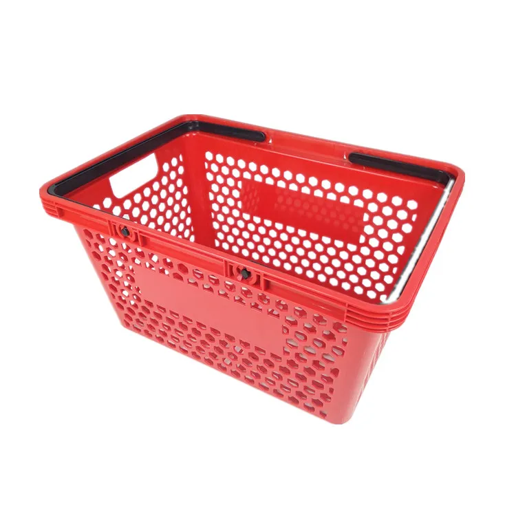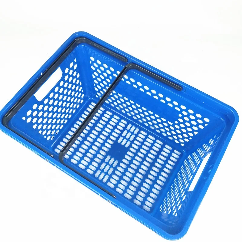 Wholesale Collapsible Double Handles Supermarket Stores Plastic Shopping Basket